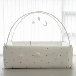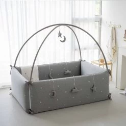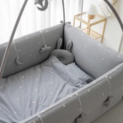 LOLBaby Cotton Embroidery Bumper Bed – Moon Star Grey (Pre-order ETA 8th Sep 2023)
