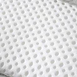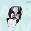 A stroller seat where two mesh materials with high air permeability and cushioning properties are piled up. It reduces the impact on the baby’s body.Â