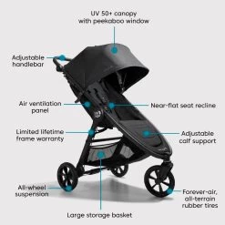 - Baby Jogger’s signature one-hand fold with auto-lock ensures easy transportation and storage
