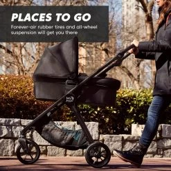 - Forever air rubber tires with all-wheel suspension provide a comfortable stroll on any terrain