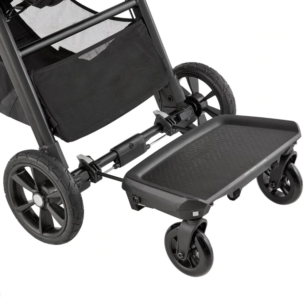 The Baby Jogger® Glider Board is a great way to let your older child hitch a ride while you stroll. It attaches easily to the rear axle of your stroller and has a non-slip surface to help your child ride safely. The Glider Board flips up to stay out of the way when not in use, and folds easily even when attached to the stroller.