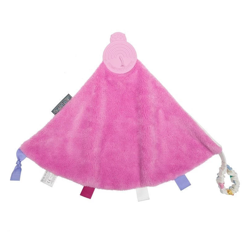 Comforting – with super-soft jersey cotton and cuddle fleece that’s delicate on young skin but highly absorbent, our Comfortchew is a comforter, a teether, tags, and feels like your favourite teddy.