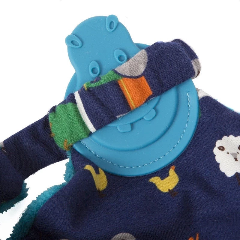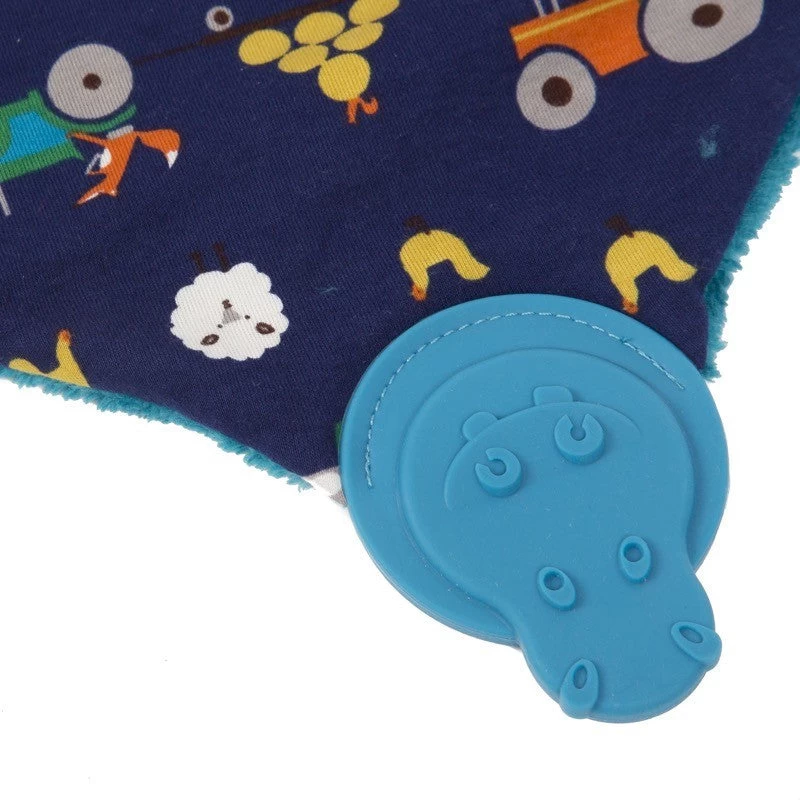Comforting – with super-soft jersey cotton and cuddle fleece that’s delicate on young skin but highly absorbent, our Comfortchew is a comforter, a teether, tags, and feels like your favourite teddy.