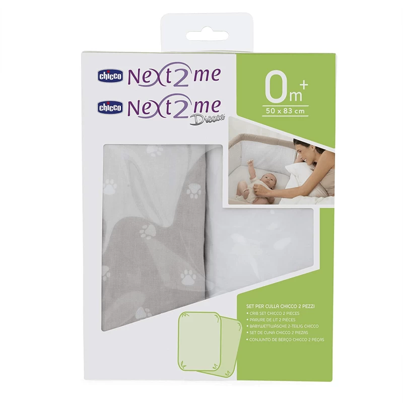 The Chicco Set of 2 Fitted Sheets are the perfect addition to your Chicco Next2Me or your Chicco Lullago. Soft and stylish, these are composed to ensure sweet dreams for your baby from birth onwards, wherever they are!