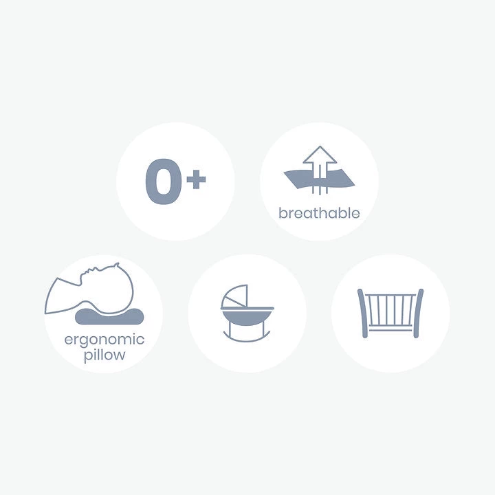 It’s a miracle how fast babies grow, don’t you think? If your baby naturally lies its head to the same side when asleep, he or she can develop the flat head syndrome. No need to stress about it, doomoo’s Baby Pillow keeps your baby’s head in a healthy position, while homogeneously distributing the pressure around your baby’s skull. Thanks to the 3D fabric, the Baby Pillow is breathable. This pillow is practical and compact, so you can use it in all types of prams, cribs, cots and beds.Â