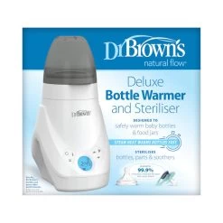 Quickly and safely warm bottles and food jars – and sanitize – using steam heat with the Dr. Brown’sâ„¢ Deluxe Bottle Warmer & Sterilizer.Â