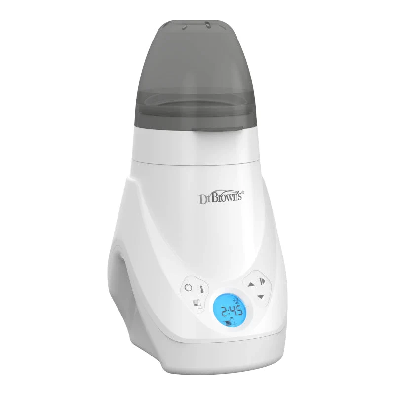 Smart features include an easy-to-use programmable LCD Control Panel with warming settings for a variety of bottle types, sizes, and starting temperatures. Its new design offers an easy-to-read keypad with both audio and visual alerts that let you know when a warming cycle is complete. The Deluxe Bottle Warmer is about safety first, using electric steam to gently warm bottles. Plus, it has an auto shut-off 60 seconds after a cycle is complete.