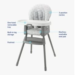 The Graco® SimpleSwitch™ Highchair features a 2-in-1 design that grows with your baby from infant to toddler.