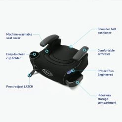 - Front-adjust LATCH system allows you to quickly and easily secure the booster to the vehicle seat