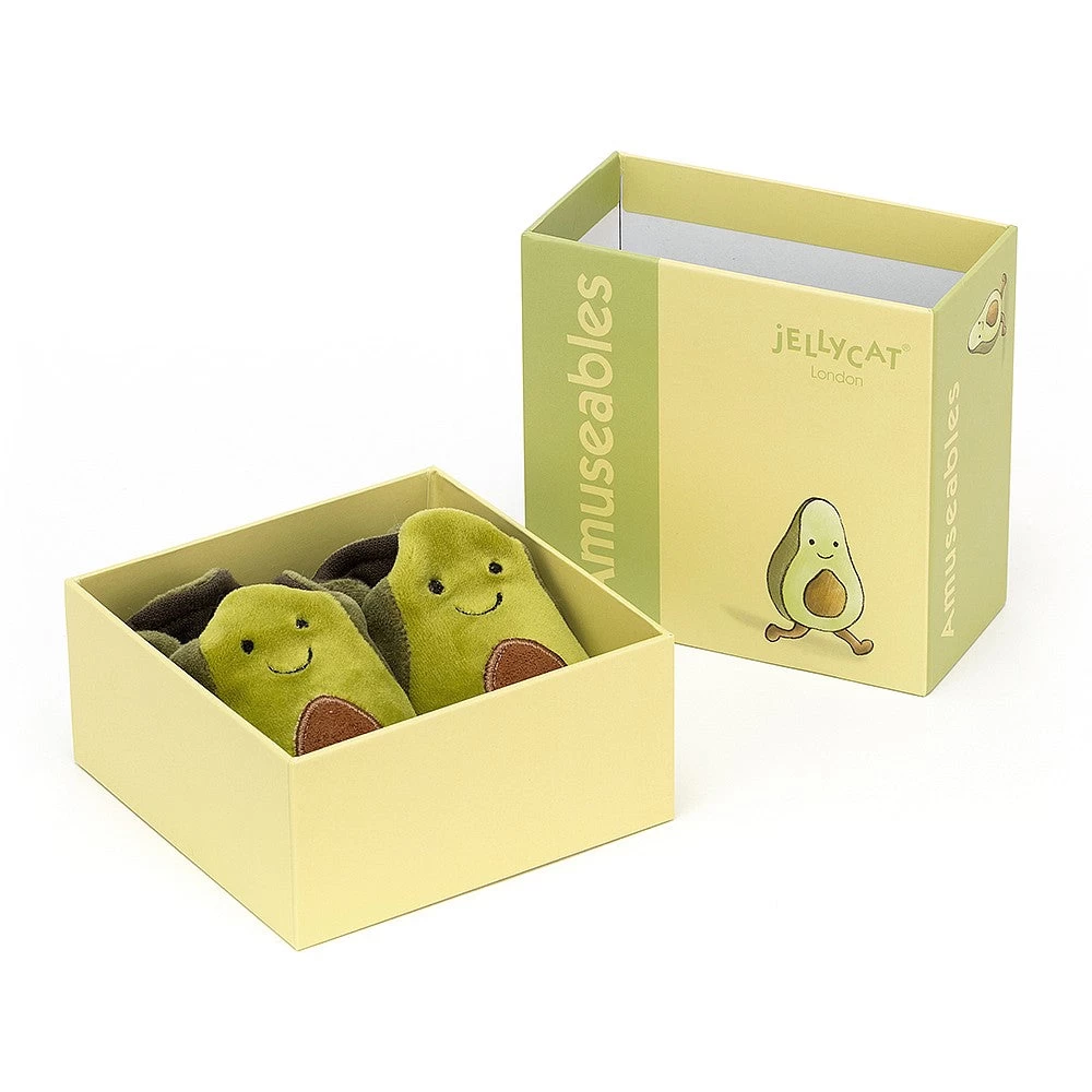 Little feet can go green with the Amuseable Avocado Booties! Beautifully boxed for a yummy gift, these supersoft booties come in rich two-tone green. They’re elasticated to stay on snugly, with brown suedey soles and matching stitchy stones.