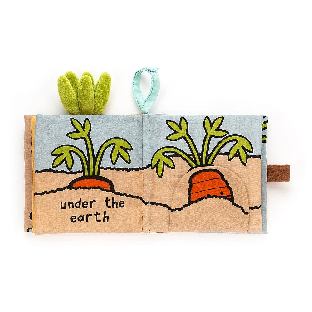 How do crunchy carrots grow? I am a Carrot helps little ones learn, with gorgeous pictures and hidden surprises. This bubbly book has a fabric fastener, liftable flaps and a velvety green leafy top!