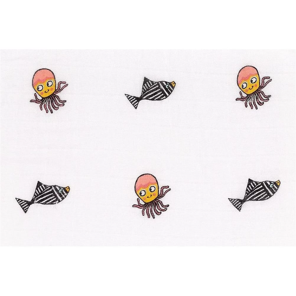 Splashes and spills? Fish out the Sea Tails Pair of Muslins! These soft cotton muslins have a bubbly print of wriggly, jiggly sea creatures! These handy cloths come in a sweet print gift box – just the thing for a waterbaby shower!