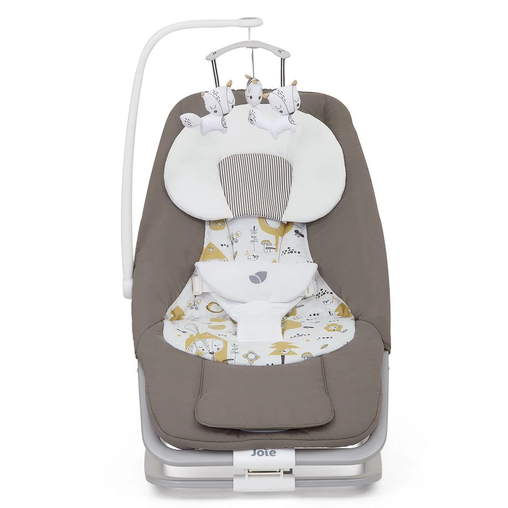 – Removable, rotating toy bar with 2 toys for playtime entertainment