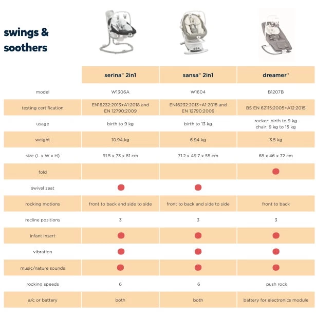 – 2 speed soothing vibration pairs with 5 classical lullabies and 5 nature sounds to calm little ones