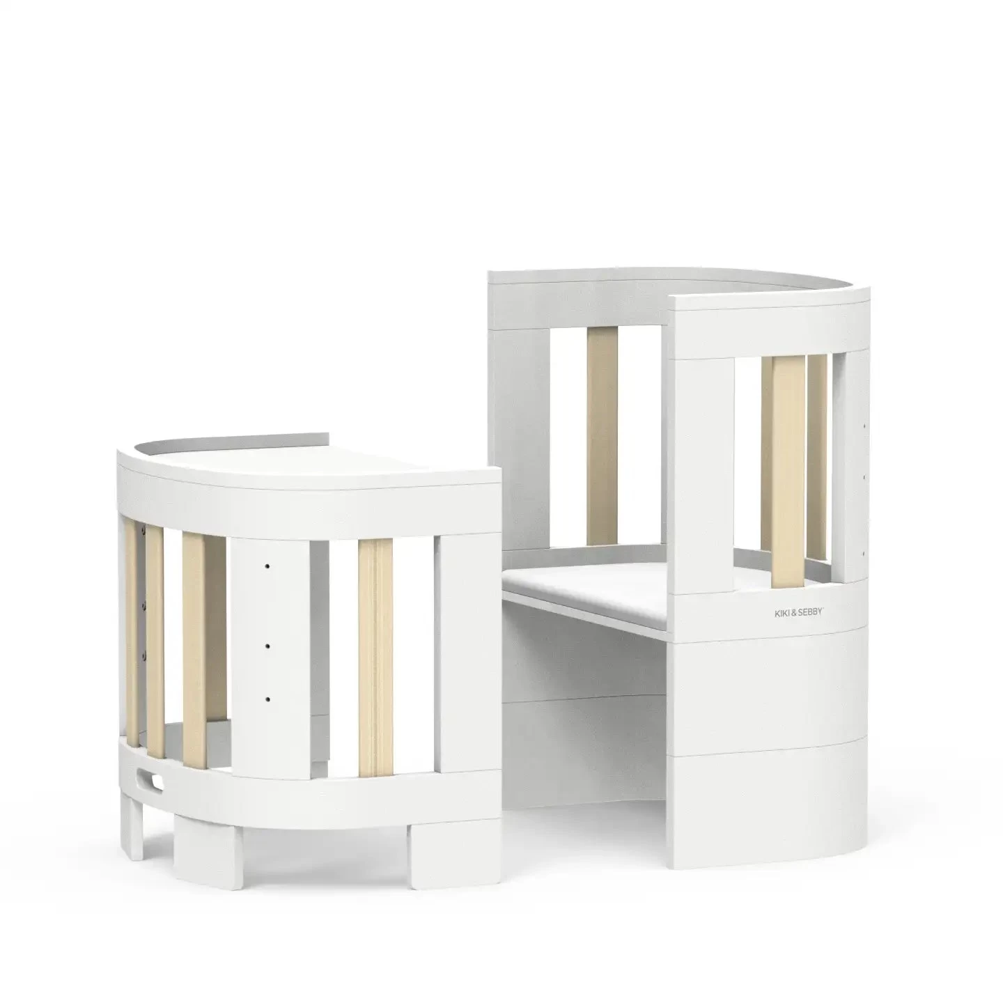 | Our SBROUT™ is a beautiful 6-in-1 modular furniture piece that will grow with children from the first night at home until late childhood. The gorgeous, Scandi-style SBROUT™ starts as a crib suitable for a newborn to sleep safely up until around 6 months. As the baby grows, the SBROUT™ can be easily adjusted into a space-saving cot suitable for use until around 2 years old. It is especially perfect for the inner city apartments, and tight for space. With lockable, swivel wheels, the SBROUT™ is easily moved from room to room and once the baby has outgrown the cot, the additional pull-along handle and small wheels turn it into a pull-along toy cart. When the toddler has moved into their bed, the SBROUT™ is easily adjusted into a super cute table and chair, ideal for the little ones to get crafting and creative or their little dining table next to the adults. Following on, the SBROUT™ is easily transformed into a handy shelving system for your child’s bedroom and then into a chair with additional cushions suitable until late childhood. The SBROUT™ is made from sustainable wood and is otherwise well-known as eco-wood. As a raw material, rubber wood is also known as Asian Oak, as it is durable, strong, tough and resilient. Thus it is very durable and easy to maintain. The parents can easily clean it with just a wet and then a dry cloth will quickly dust off any surface dirt. There are 5 adjustable heights for SBROUT™ Baby Crib and Mini-Cot. The four sturdy legs can be unscrewed and then screwed to the height the parents are most comfortable with. Dimensions (Max. Height): 1024 x 544 x 921 mm* Dimensions (Min. Height): 1024 x 544 x 793 mm* Max. Floor to Mattress Height: 418 mm Min. Floor to Mattress Height: 305 mm Weight: 27.3 kg *5 Adjustable Heights: 793 – 921 mm What is included: Left Assembly Right Assembly Leg Simple x 2 Leg with Castor Wheels x 2 Base board x 1 Base Moon Extension Board x 2 Topper Curve x 2 Side Extension x 2 Cushion seat x 1 Toy Cart Caster wheels x 4 (Screws and Fixtures) |