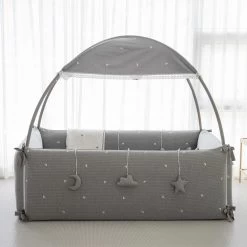LOLBaby Cotton Embroidery Bumper Bed – Canopy