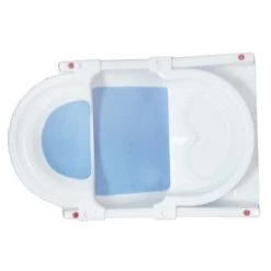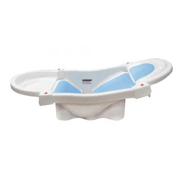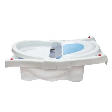 The Dip In Fold Up™ Baby Bath Tub easily folds and unfolds. It can be used to be placed in a (large double) sink, bathtub or just in the bathroom. It is folded into a compact design for easy storage great for saving space – slip-resistant foam pad provide extra comfort during bath time. The accessory holding area is good to hold baby’s bath supplies or toys which you need during bath time handy. The Contoured Foam Head Support does not work well for young infants as their neck muscles are still fairly weak. The drain that is on one side of the tub is very convenient for draining away the bath water so that you can towel the baby off easily without picking up a slippery infant, however it leaves water on the opposite side and you have to start tilting the tub around to get the remaining bit of water out. Ideal for travel usage.