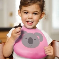 built-in crumb catcher. The Baby bib has an adjustable strap that fits sizes 6 months to 3 years old.