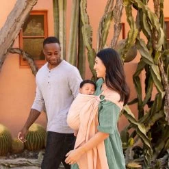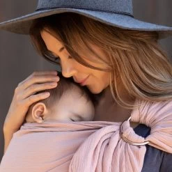 Elegant and effortless, the MOBY Ring Sling is now offered in a breezy, breathable double gauze cotton textile. Both lovely and lightweight, its intuitive design offers a fashionable, functional baby carrying option for all parents and caregivers. Crafted from a high-quality, woven cotton fabric, the sling provides an approachable, easy-to-wear alternative to the classic wrap design. It also offers both front and hip-carrying options, allowing the wearer to change positions and maintain comfort as baby grows. MOBY Ring Sling: the perfect combination of elegance, simplicity, support, and style.