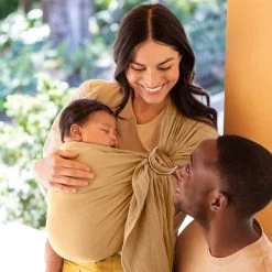 Elegant and effortless, the MOBY Ring Sling is now offered in a breezy, breathable double gauze cotton textile. Both lovely and lightweight, its intuitive design offers a fashionable, functional baby carrying option for all parents and caregivers. Crafted from a high-quality, woven cotton fabric, the sling provides an approachable, easy-to-wear alternative to the classic wrap design. It also offers both front and hip-carrying options, allowing the wearer to change positions and maintain comfort as baby grows. MOBY Ring Sling: the perfect combination of elegance, simplicity, support, and style.