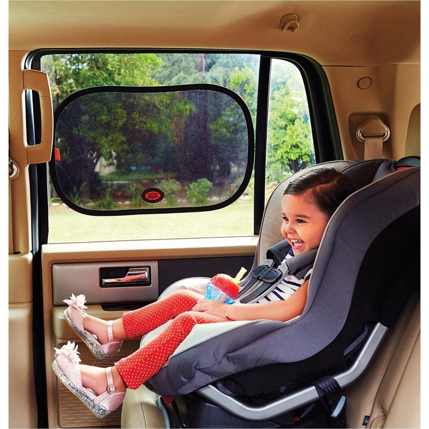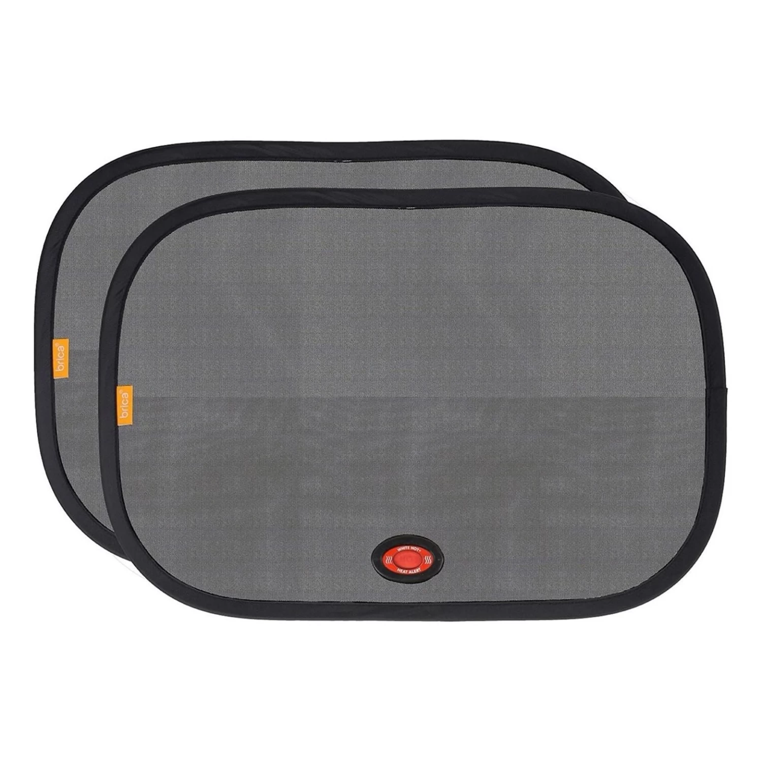 Whether you are on a road trip or just a jaunt across town, these BRICA Cling™ SunSafety™ Shades give you a cool, comfortable ride in seconds. The durable, Soft-Twist™ safety frame folds easily for storage and when you are ready for some shade, just pop it open and the dual-layer mesh material clings to your car window, blocking over 90% of harmful UV rays…without blocking your view. Is the car too hot for your child? Let the patented White Hot® system let you know by turning white when the car is too hot. The lightweight design makes it simple to install, remove and reuse and the two extra-large shades give you flexible options so you can be sure you’ve got things covered.