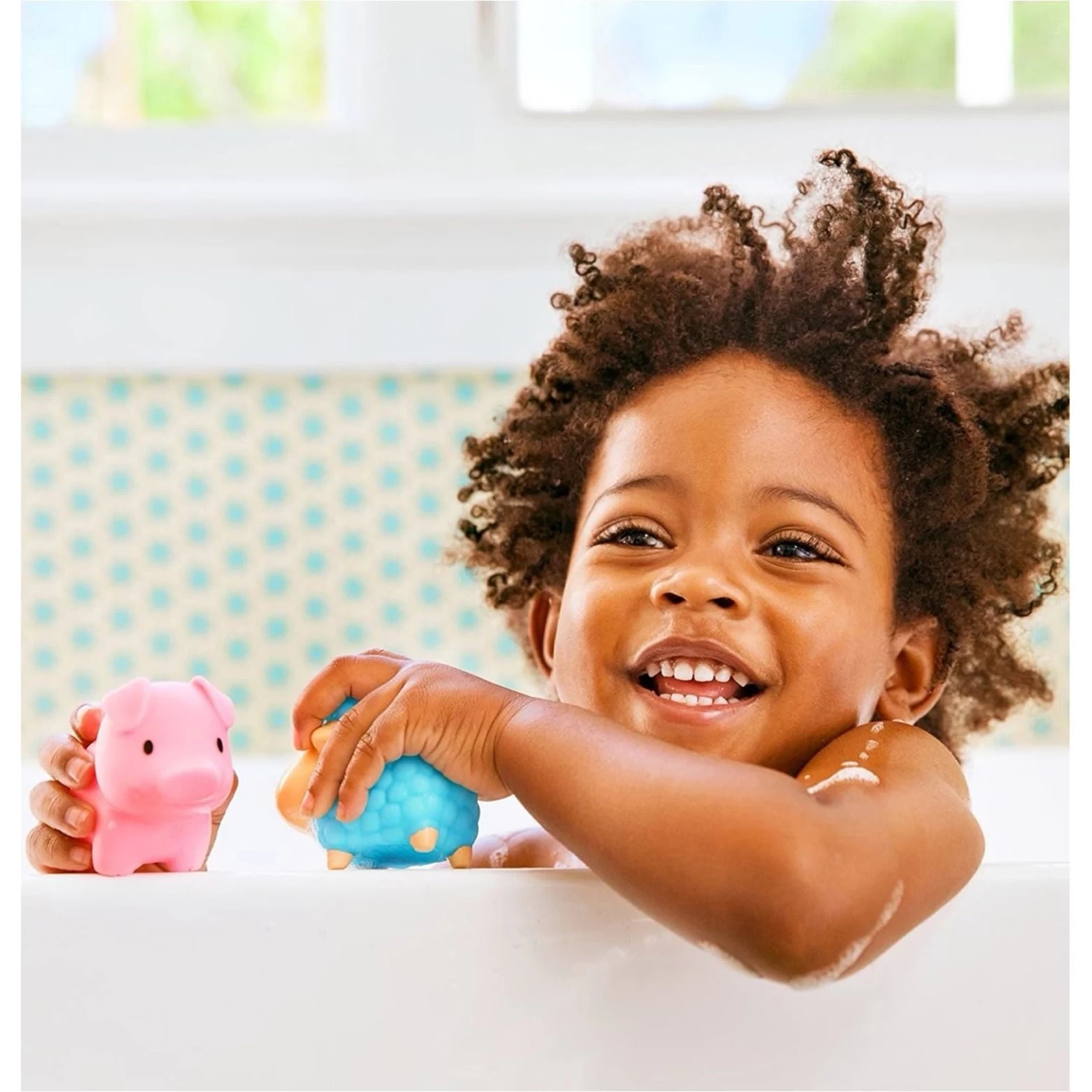 Old MacDonald had a farm, and now your little one does too! Bring farm-inspired fun to the tub with Munchkin’s Farmâ„¢ squirtin’ barnyard friends. This fun 8 pack of bath squirts includes a chicken, sheep, cow, pig, horse, owl, duck and frog. Help baby develop fine motor skills while learning to identify animal names and sounds! These brightly-colored Farmâ„¢ bath toys float, squirt water, and are sized just right for little hands to grasp and squeeze. They’re also durable, so you don’t have to worry about chipping or breaking. Add these barn friends to your bath time mix and watch the adventures unfold!