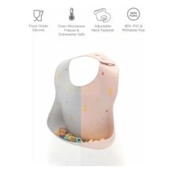 Made from 100% food-grade silicone with deep spill pocket, our bib keeps mess under control as babies explores a whole new world of taste & texture.
