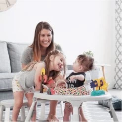 Oribel PortaPlay Wonderland Adventures & Child Stools Combo is the PortaPlay Activity Center with matching stools. The PortaPlay Portable Activity Center was designed with longevity, function, and aesthetics at its core. It starts as an infant activity center, and can convert to a play table. Folding legs make storage and transport a breeze. A spinning bouncy seat gives baby access to 5 thoughtfully designed toys.Â
