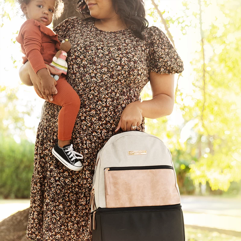 - Zip-around insulated bottom section to carry snacks or pack it with a breast pump
