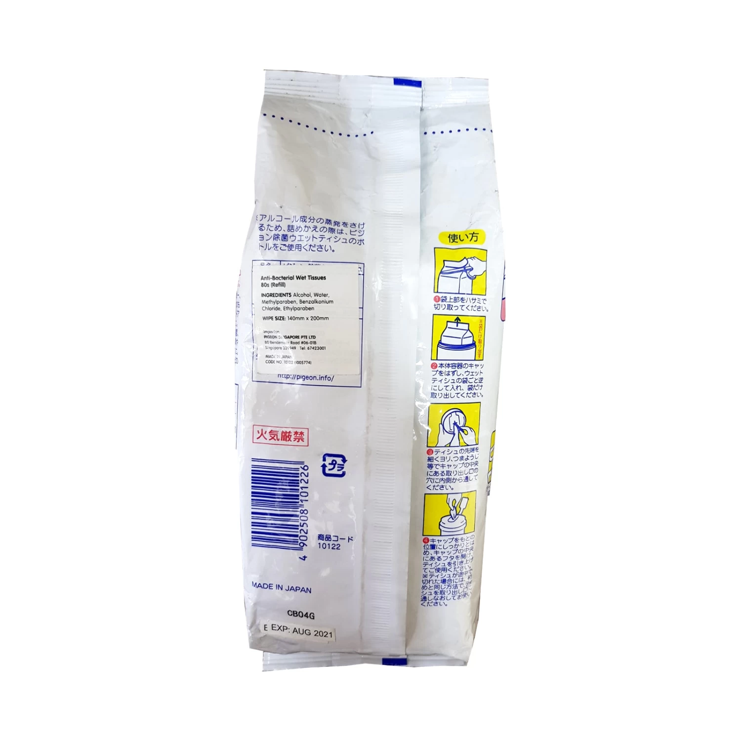 Pigeon Anti-Bacterial Wet Tissue 80 sheets (Refill Pack) from Japan