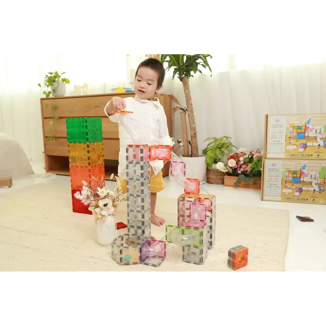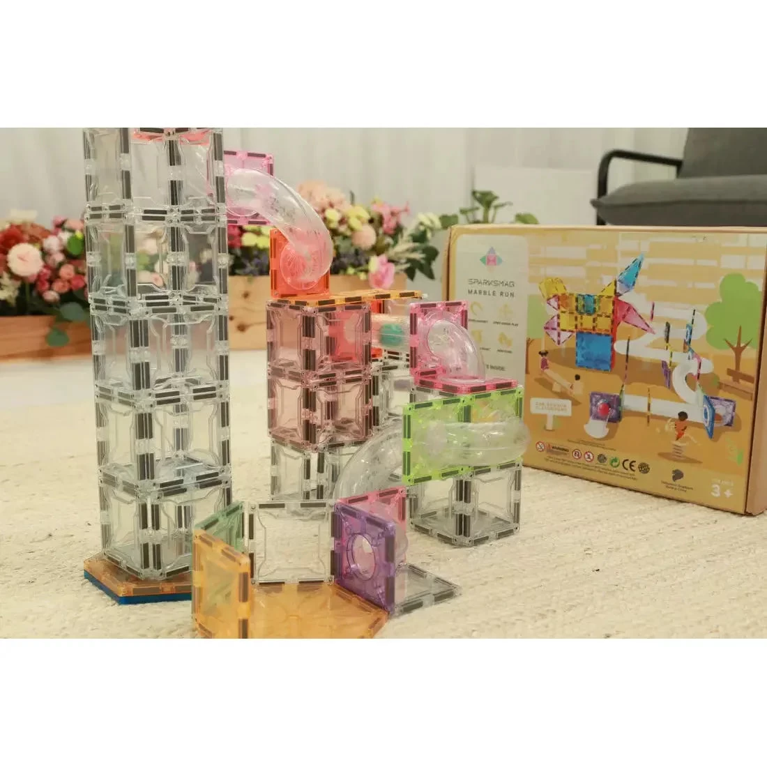🟡 VERSATILITY – SparksMag is scalable as can be built as big as desired by adding more pieces by adding more pieces. SparksMag tiles and Marble run are compatible with each other and can be played interchangeably! Â