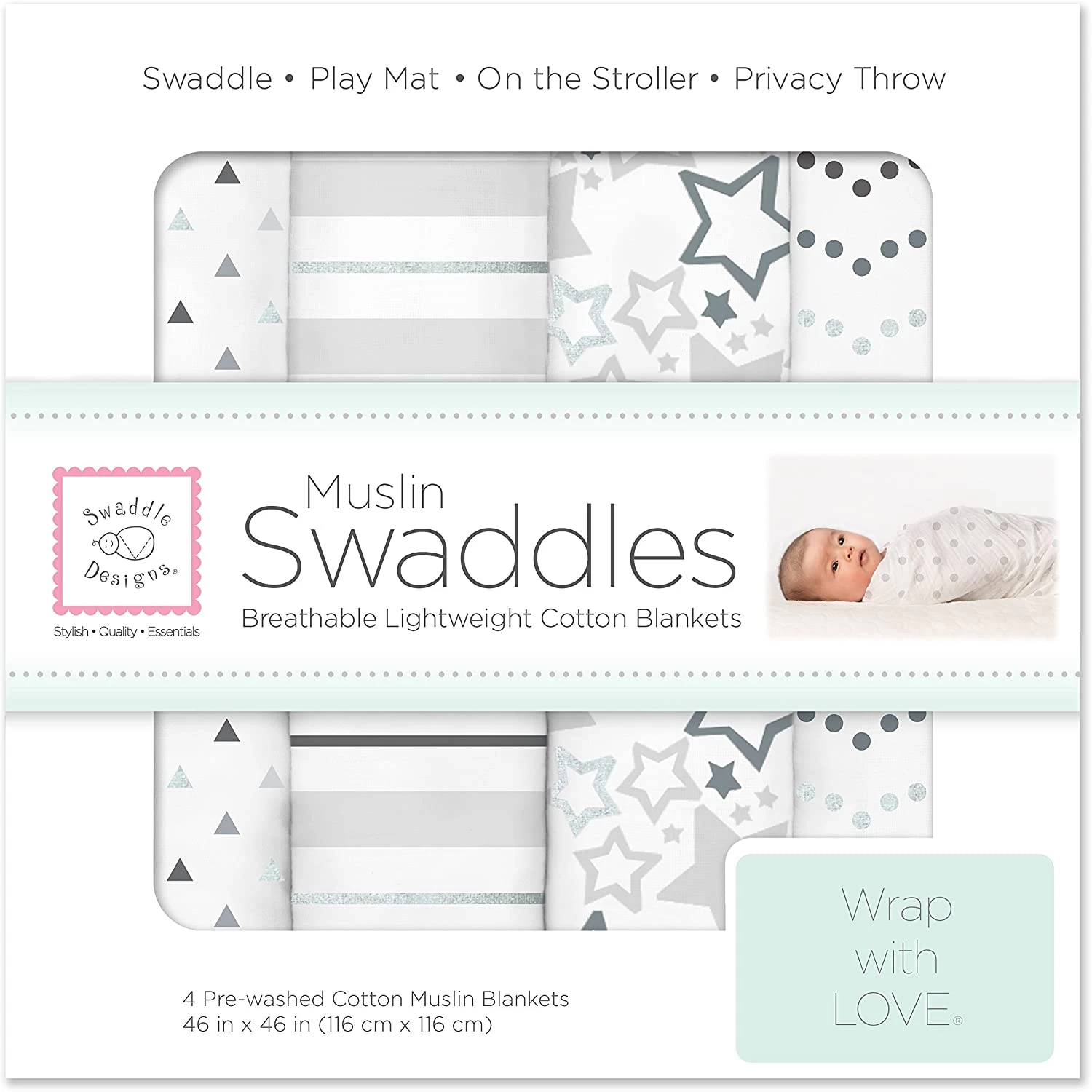 Wrap your baby in pure softness. Our boutique quality 100% cotton muslin with cheerful designs gets softer with every wash. The open weave increases breathability and reduces the risk of overheating. The generous size, square shape and helpful labels will make it easy to swaddle.