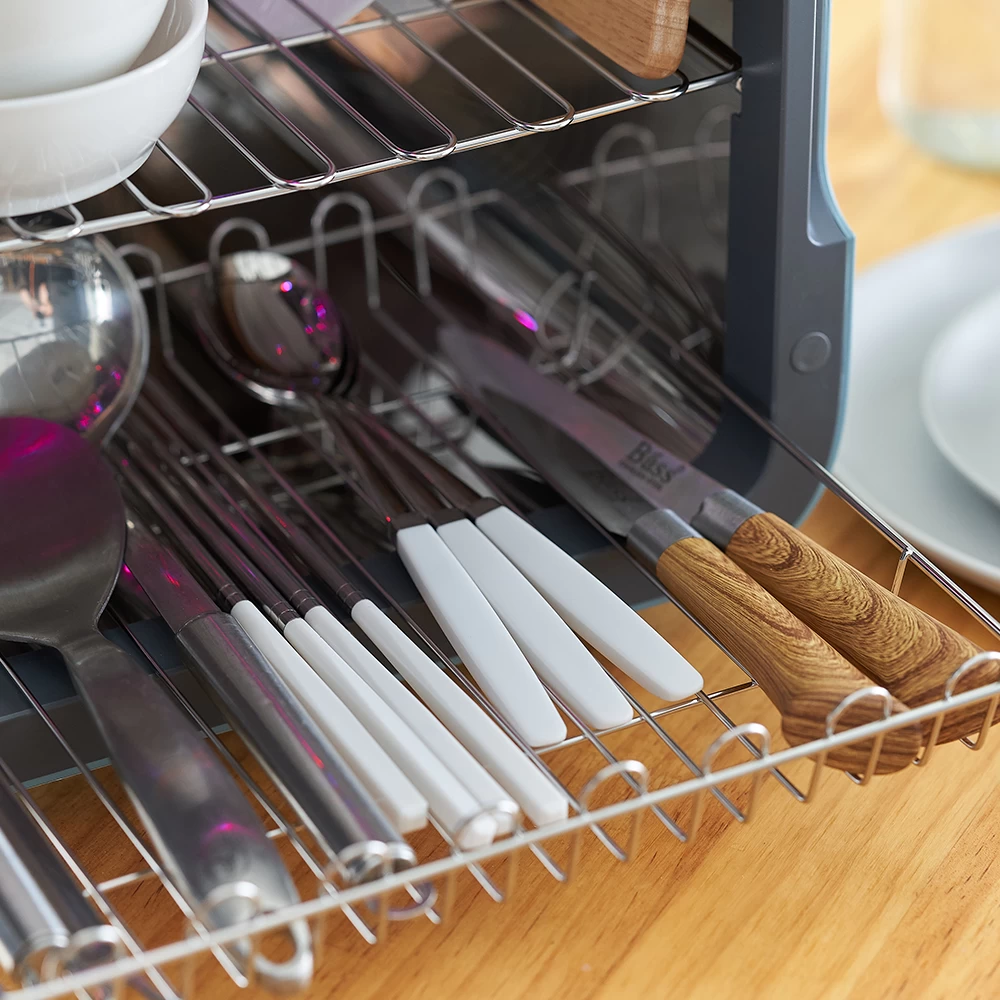 - Package Inclusions: 1 uPang UV Sterilizer, 1 Stainless Steel Basket, 1 Stainless Steel Shelf, LED lamps (pre-installed), 1 User Manual