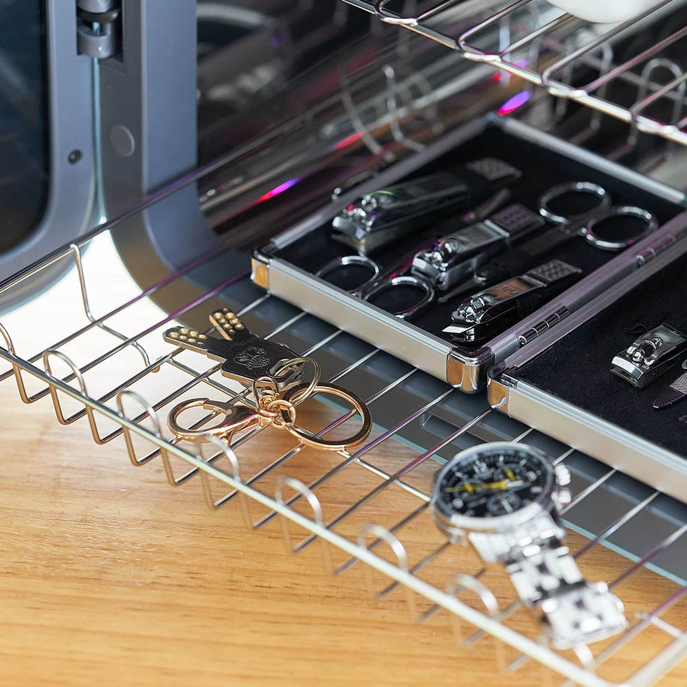 - UV Sterilization (12mins): Function used when drying is not required. Usually used for sterilization of dry objects like mobile phones, masks, clothing, gadgets, remotes, watches, keys, toothbrush.